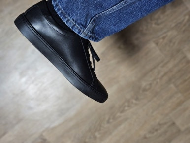 사이즈는 그런데 앞코가 길고 얇쌍한 쉐잎과 은은한 광택의 검은색 가죽이 조합되어 주는 어른스럽고 우아한 느낌이 마음에 들어 여기저기 잘 신어보도록 하겠다.
