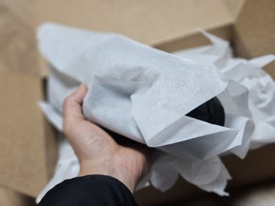 많은 리뷰에서 보기로는 소재와 메이킹에 집중하느라 포장박스가 빈약하다는 얘기가 많았는데 생각보다 박스가 탄탄한 데다가 더스트 백...이라기에는 좀 과하고 부직포 주머니에 신발이 한 짝씩 들어있어 배송상태는 나쁘지 않았다.